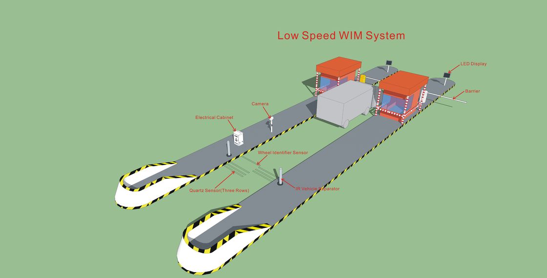 Sistem WIM Kecepatan Rendah mengacu pada sekelompok sensor terpasang dan instrumen elektronik yang berisi perangkat lunak, yang digunakan untuk mengukur kekuatan ban dinamis dan kendaraan melalui waktu dan memberikan perhitungan berat roda, beban gandar, berat total (seperti kecepatan, jarak sumbu roda), dengan mengukur dan menganalisis gaya ban dinamis menghitung berat total dan sebagian dari kendaraan yang bergerak;terutama diterapkan di jalan tol dan jalan raya lainnya, pelabuhan dan pusat distribusi logistik.